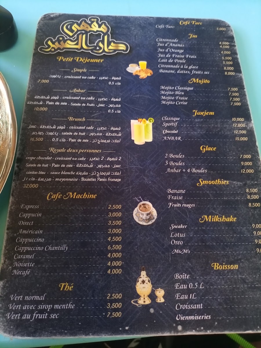 Welcome to Café Dar Anbar, a charming café nestled in the heart of Sfax, Tunisia. This café not only serves as a delightful retreat but also as a canvas for stunning photographs with its aesthetic settings spread across three levels, including a breathtaking rooftop view.
